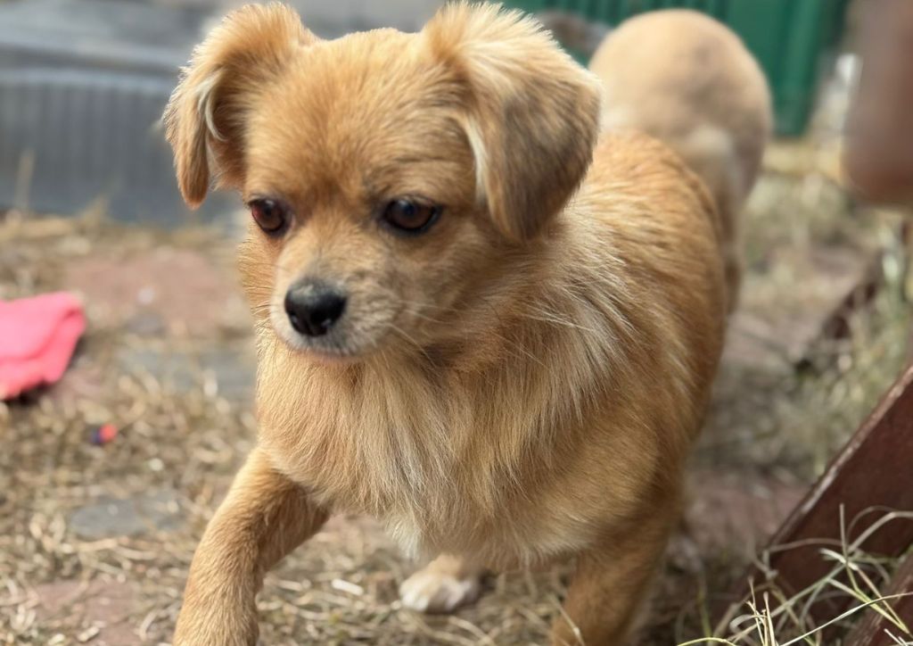 Sunt un câine foarte prietenos și drăgălaș. Încă trebuie să învăț să stau singur.